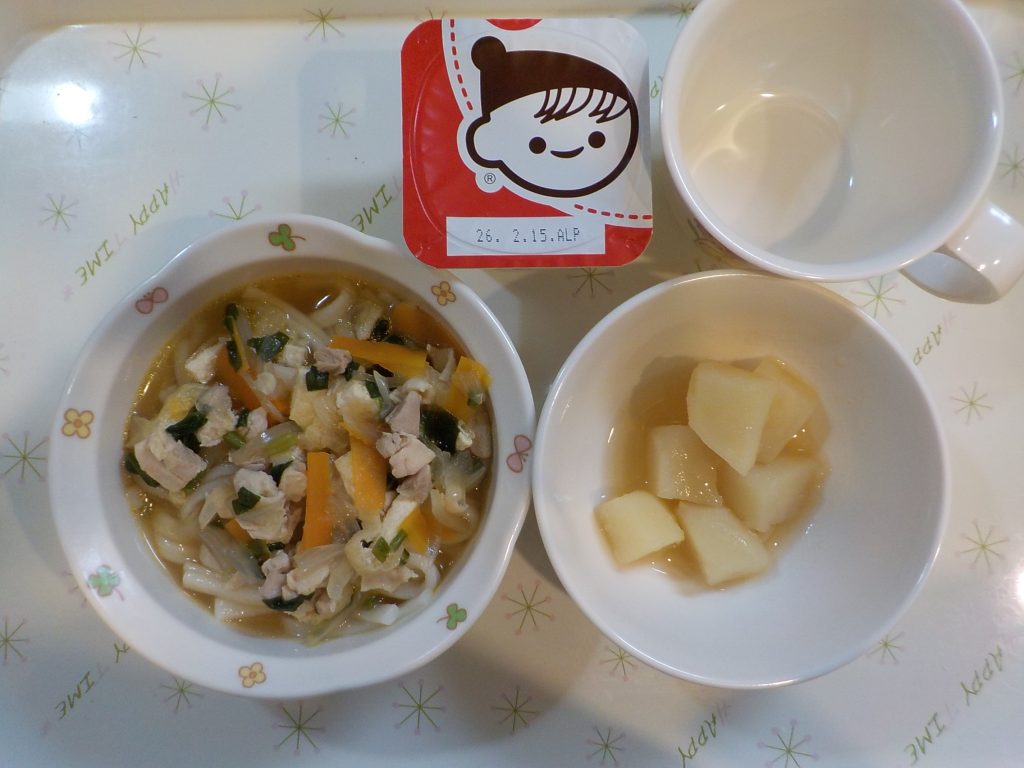 煮込みうどん じゃが芋の甘煮 ヨーグルト