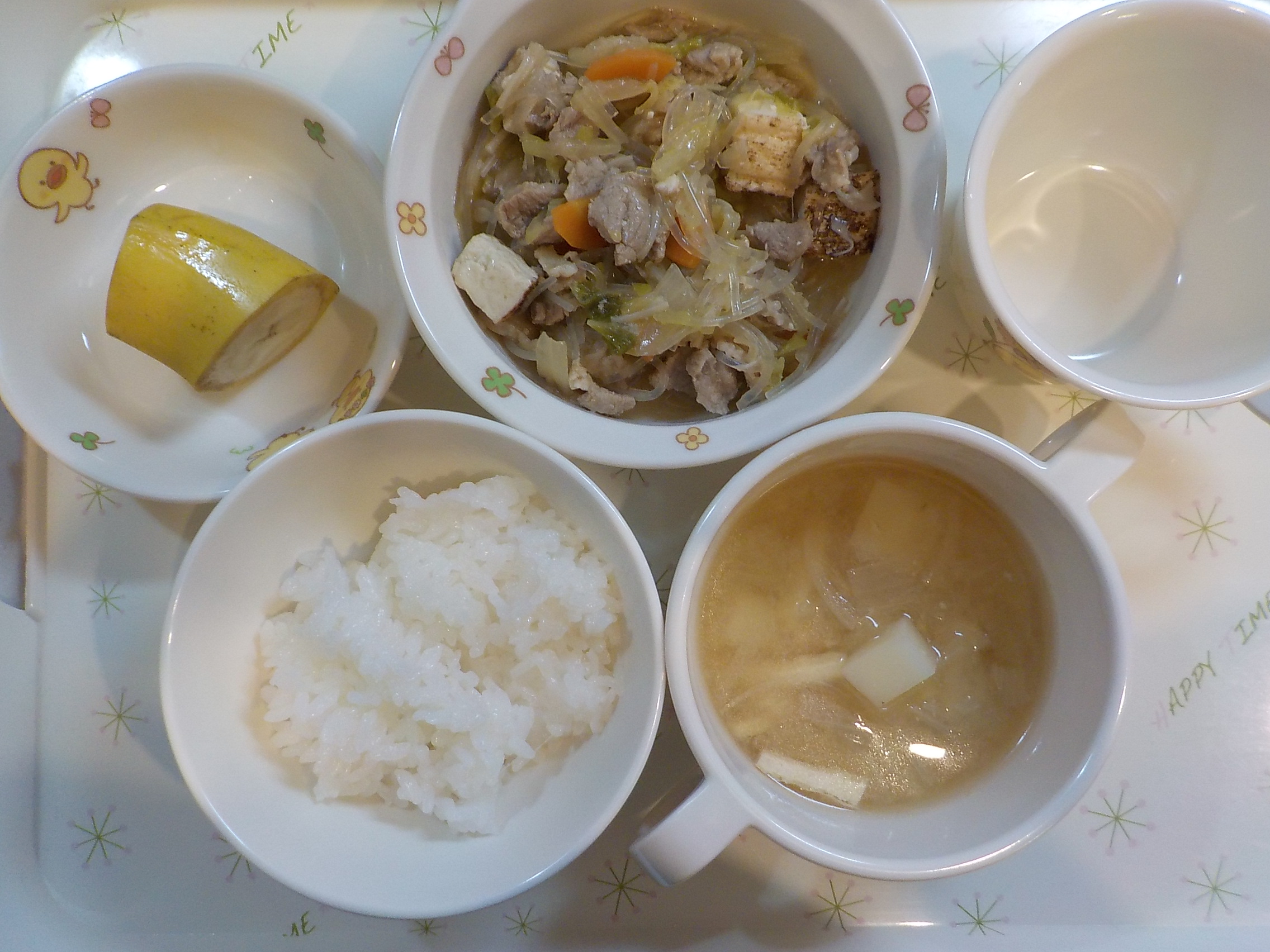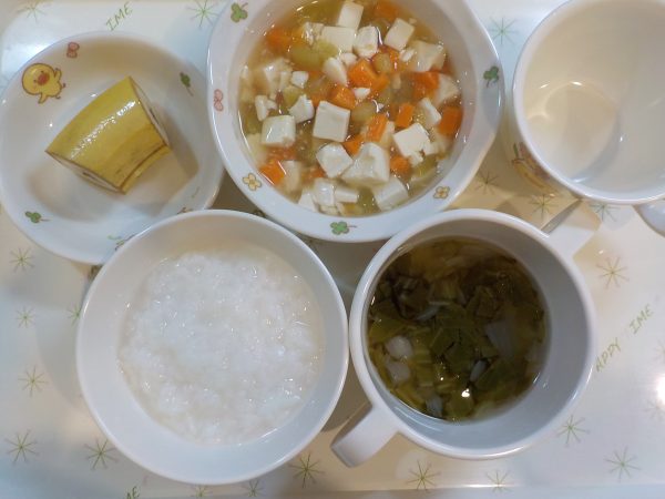 5倍粥 豆腐の野菜煮 清汁 果物