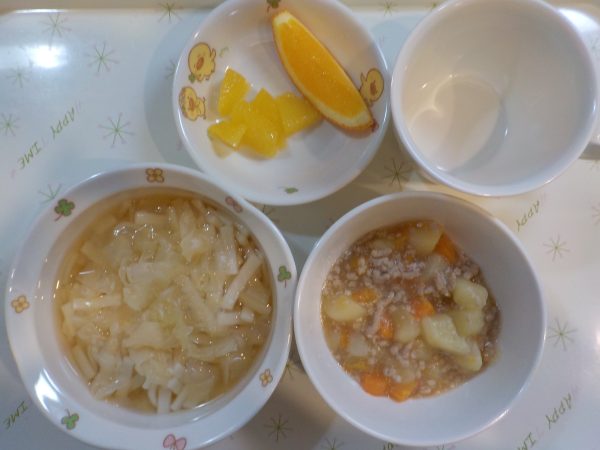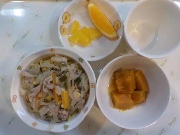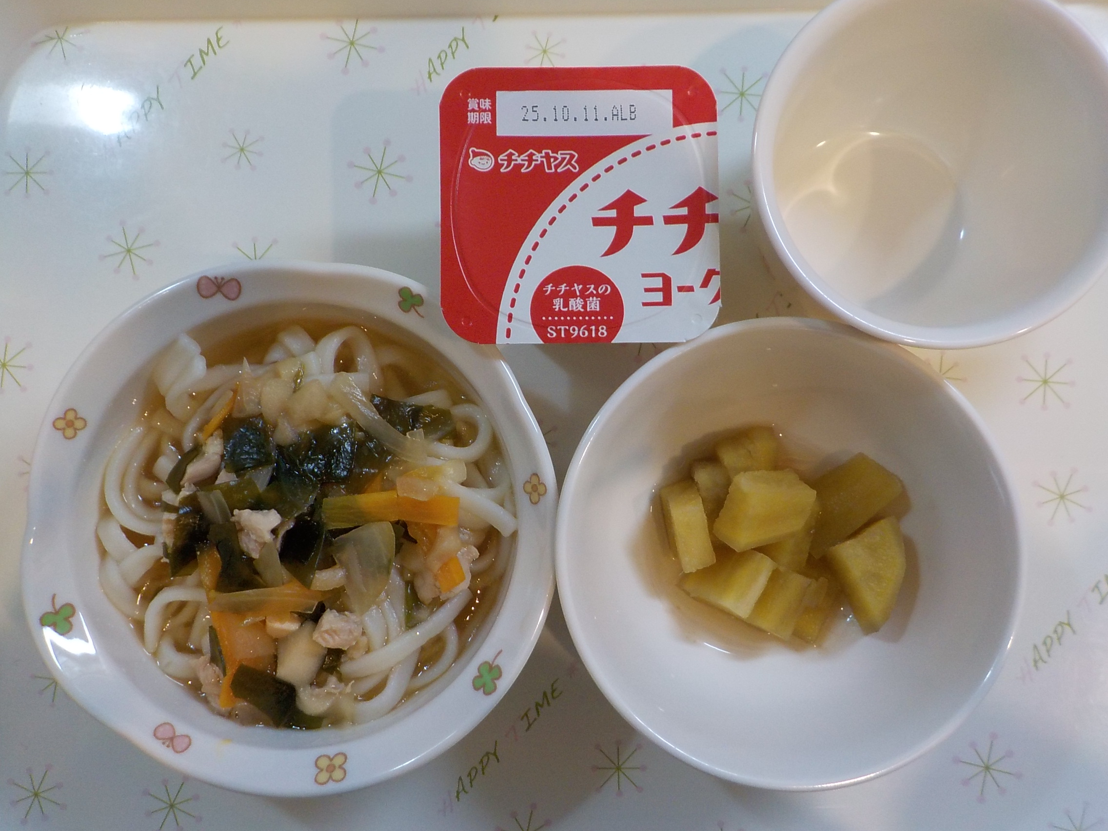 煮込みうどん じゃが芋のそぼろ煮 果物