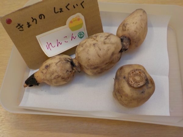 れんこんの展示をみてニコニコで入室してくる子もいました。