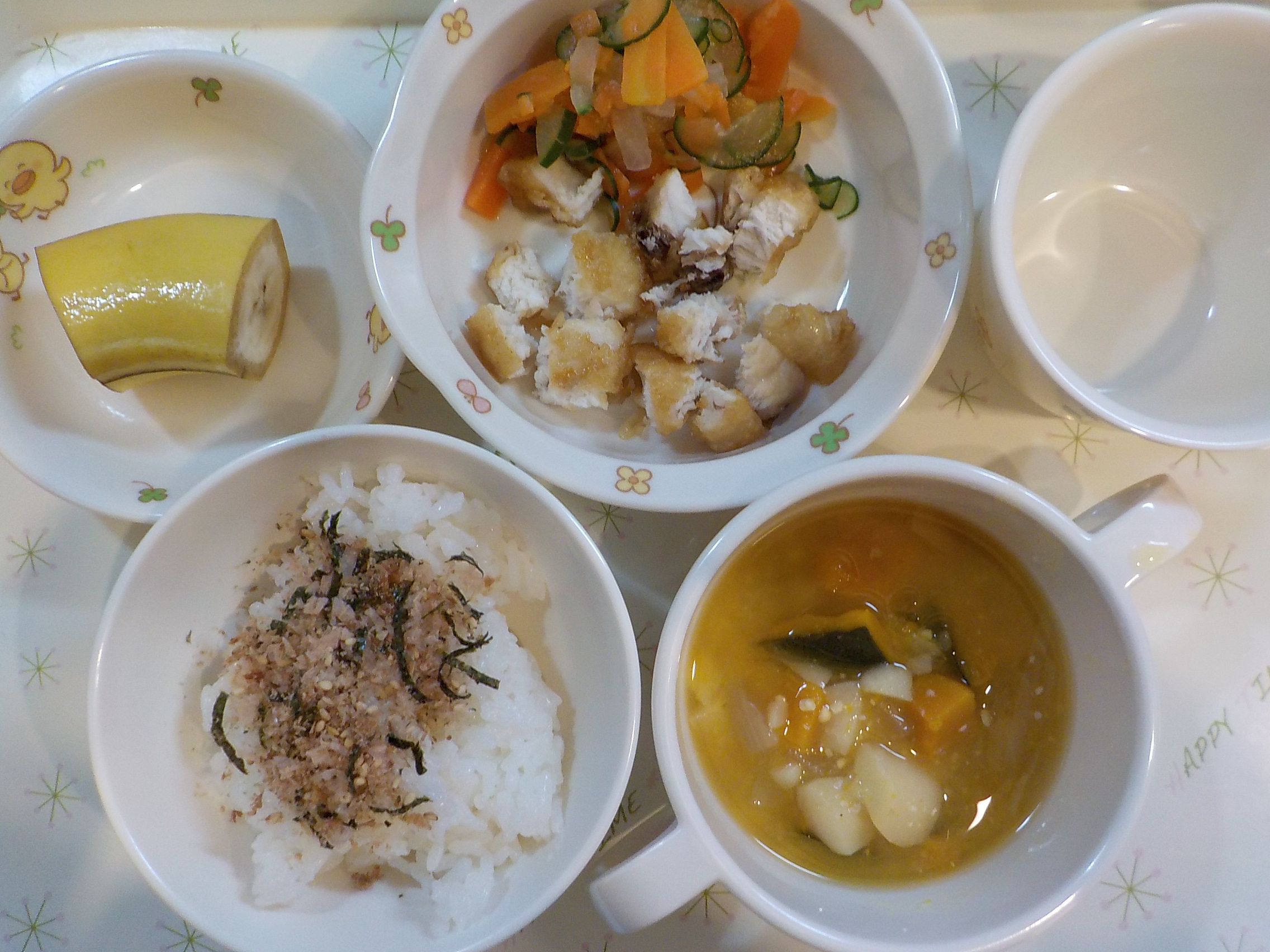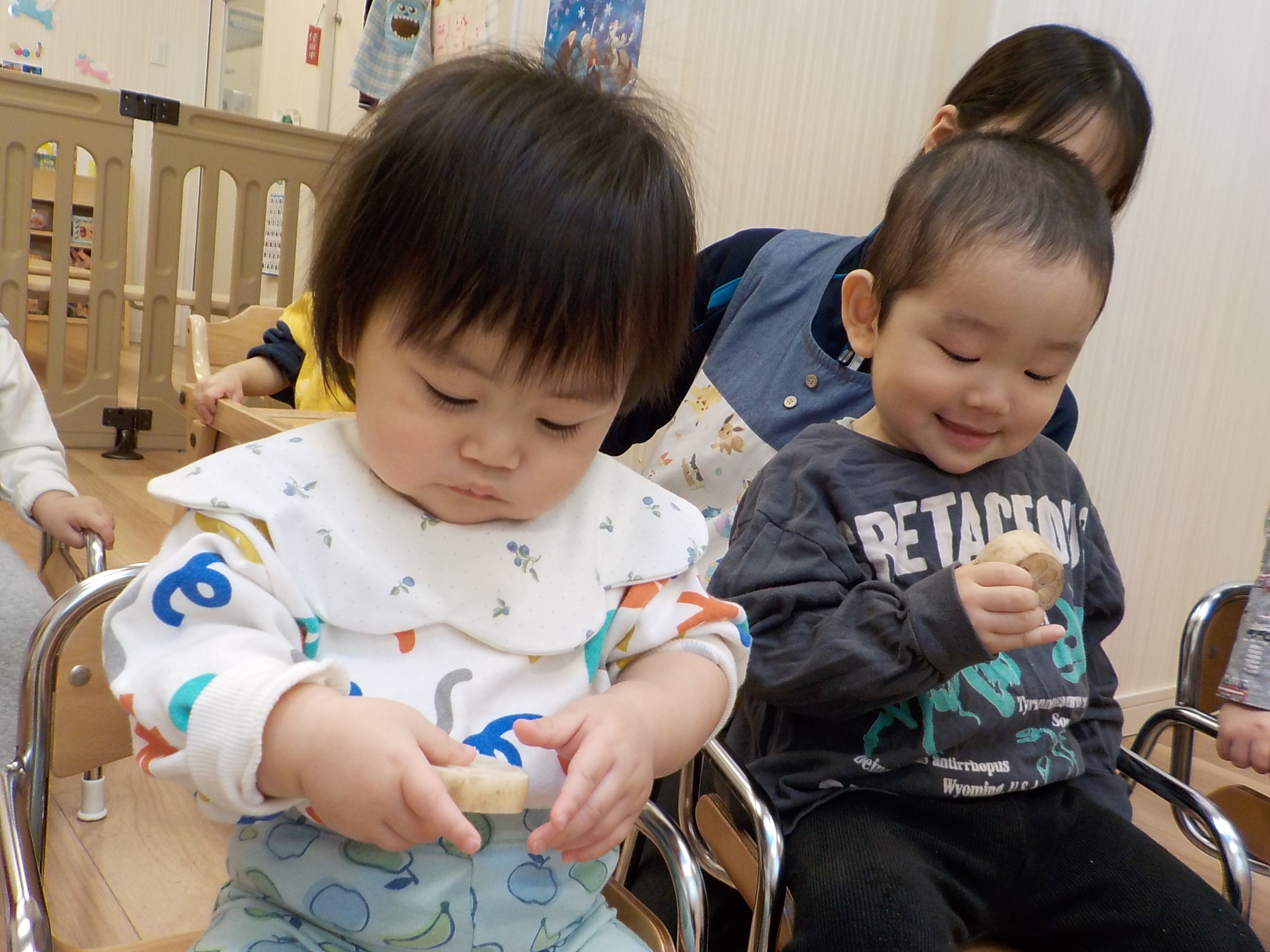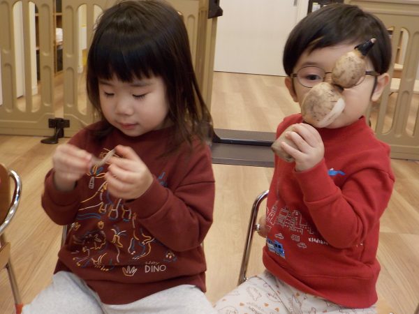 玄関にあるのをすぐに見つける子もいれば、先生から「今日 食育するよ!」と言われて
