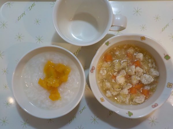 かぼちゃ粥5倍 鶏団子の野菜煮
